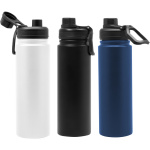 Capacidad 720 ml. Acero inoxidable. Botella doble pared, sellada al vacío. Interior en acero 304 y exterior en acero 201. Tapa con anillo de silicona, boquilla con cierre a rosca antiderrame y manija plástica para su agarre. Mantiene hasta 12 hs la temperatura de las bebidas calientes y 24 hs de las bebidas frías. Presentación en caja de regalo.
